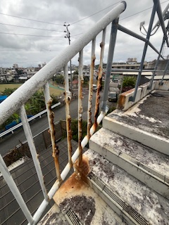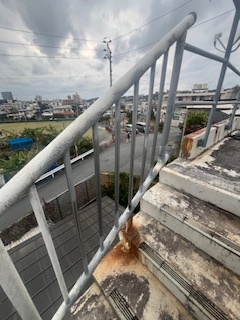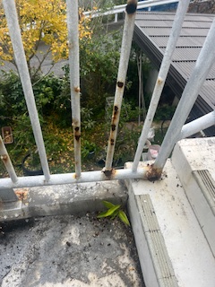 こんにちは今回は個人のお客様からのご依頼で3階部分の外手摺り修繕工事